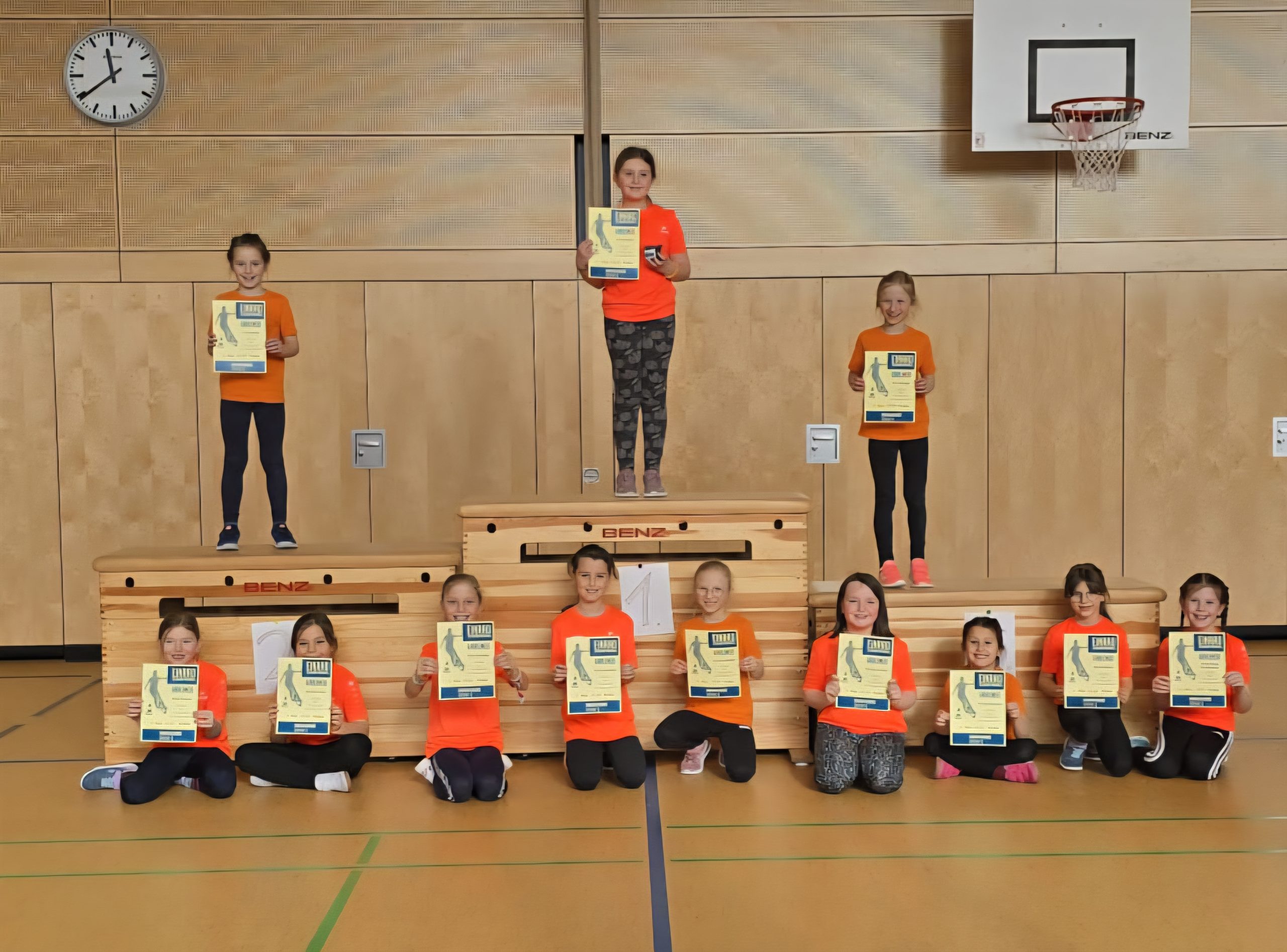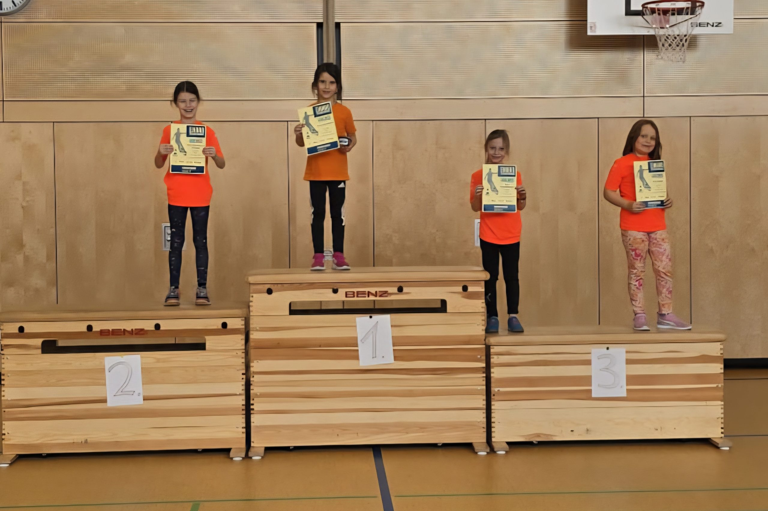 Am vergangenen Dienstag, den 10.02.2026 sicherten sich die Grundschülerinnen der Grundschule Moos im Schulwettbewerb Einrad zahlreiche gute Platzierungen.